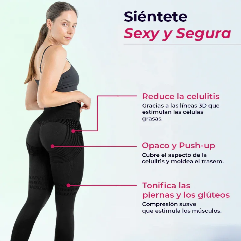 Nuestra tecnología de compresión 3D está inspirada en estudios científicos que demuestran que una compresión constante puede aumentar el flujo sanguíneo hasta en un 30%, activando los músculos y promoviendo la termogénesis. Esto ayuda a tu cuerpo a quemar grasa de manera más eficiente y a reducir visiblemente la celulitis con el tiempo, de forma natural y sin esfuerzo.